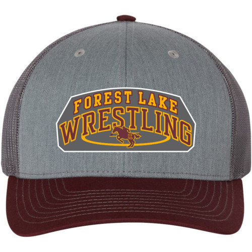 Maroon/Grey Heather Richardson Snapback Trucker Cap w/ Flexstyle Patch.