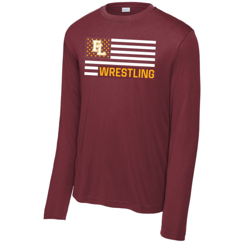 Maroon Long Sleeve Posicharge Competitor T w/ 2-Color Front Print.