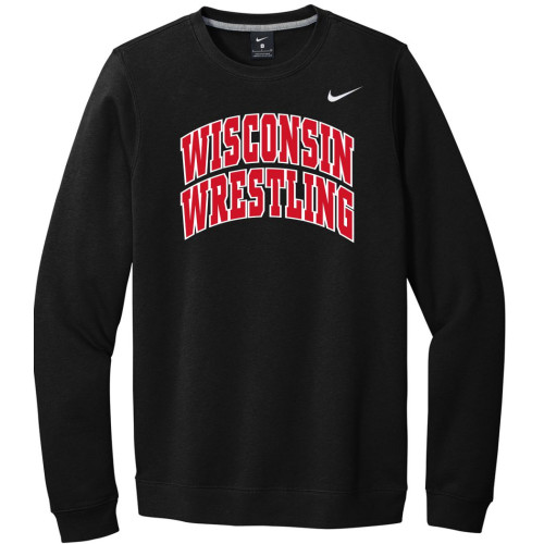 Wisconsin Wrestling Black Nike Club Crew Sweatshirt. High quality design created by Championship Products Custom Apparel.