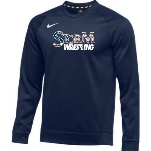 This is the MN/USA Wrestling Storm Navy Nike Therma Crew Sweatshirt with Front Print.