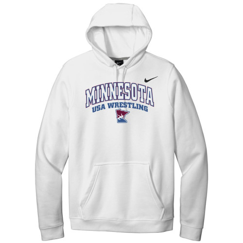 This is the MN/USA Wrestling White Nike Club Hooded Sweatshirt with Front Print.