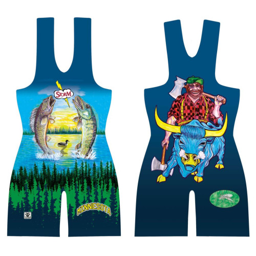 MN/USAW Paul Bunyan Fish Blue Wrestling Singlet